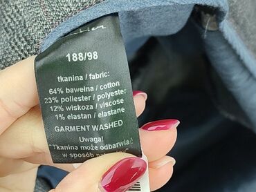 - Skład tkaniny (na metce): 64% bawełna, 23% poliester, 12% wiskoza, 1% elastan