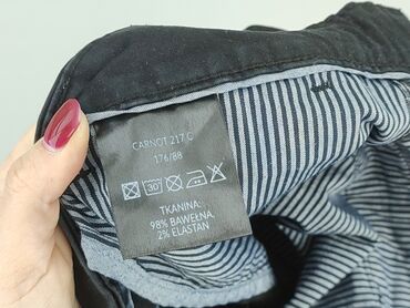 Męskie spodnie chinos/jogger w kolorze czarnym. - Krój: prosta nogawka, lekko zwężana; pas z elastyczną gumą i troczkiem do regulacji. - Materiał: 95% bawełna, 5% elastan – miękkie, przewiewne, z ...