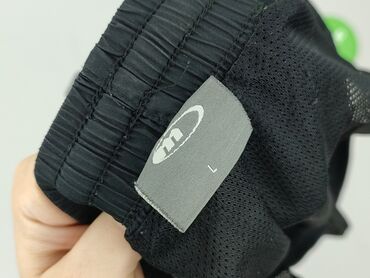 Męskie spodenki sportowe/szorty biegowe - Kolor: czarny z białymi wstawkami po bokach i z tyłu - Rozmiar z metki: L - Materiał: 95% poliester, 5% spandex (sprężyste, szybkoschnące) - Pas: szeroka,...
