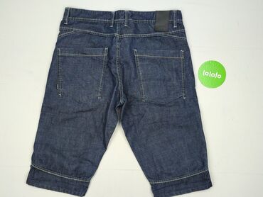 Szorty jeansowe męskie Cropp Denim Industry - Model typu jogger: szeroki, elastyczny ściągacz w pasie w kolorze szarym + sznurek do regulacji - Rozmiar z metki: 30 - Kolor: bardzo jasny, przeciera...