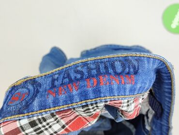 Jeansowe szorty męskie/kids (uniwersalne) - Klasyczny denim w kolorze niebieskim - Krój do kolan - Zapięcie na guzik i zamek - Pięć kieszeni: 2 przednie, 1 mała bilonówka, 2 tylne - Szlufki na pas...