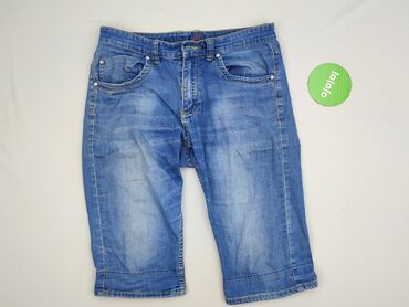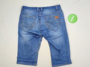 Męskie jeansowe krótkie spodenki M. SARA - Krój: klasyczne denimowe bermudy, długość za kolano - Kolor: jasny niebieski (stone wash, lekkie cieniowania) - Rozmiar: 34 (wg metki) - Materiał: 70% ba...