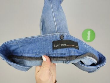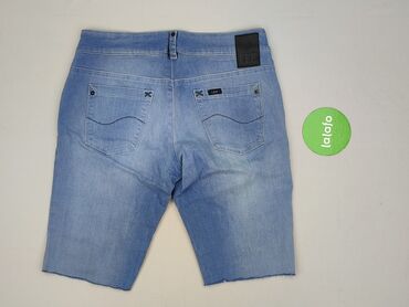 Męskie krótkie spodenki jeansowe Lee - Marka: Lee (etykieta wewnętrzna) - Fason: denimowe bermudy z podwiniętymi nogawkami - Kolor: niebieski z delikatnymi przetarciami/wybieleniami - Zapięcie: su...