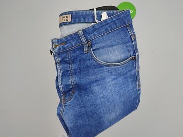 Jeansowe spodnie chłopięce RAMSDEN - Model: denim z efektem przetarć i cieniowania - Kolor: niebieski - Rozmiar z metki: 30 - Skład materiału: 85% bawełna, 12% poliester, 3% spandex – elastyczne i...