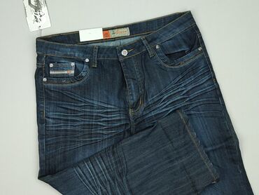 Jeansy męskie, granatowe (dark blue), rozmiar z metki: 33. - Krój: zwężane nogawki (slim/tapered), standardowy stan. - Zapięcie: guzik + zamek błyskawiczny. - Kieszenie: 5 kieszeni (2 z przodu, 1 ...