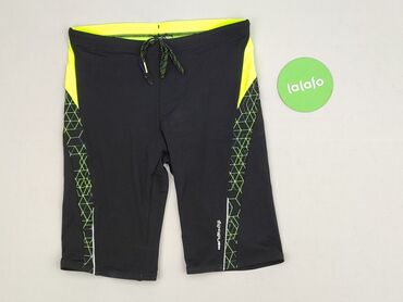 Męskie szorty kąpielowe/plażowe Decathlon - Wzór: czarne tło z palmami w odcieniach mięty i lilii - Krój: krótkie, lekko zaokrąglone boki z lamówką - Pas: elastyczny z troczkiem do regulacji - Kie...