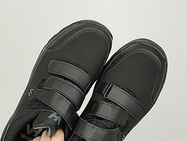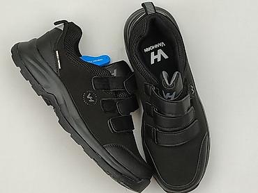 Czarne sneakersy męskie marki Vanhorn, model 23.34002BK1, w rozmiarze 41. Obuwie zapinane na trzy rzepy, co zapewnia łatwe dopasowanie i komfort noszenia. Posiadają solidną, antypoślizgową podeszwę z wyraźnym bieżnikiem, idealną do codziennego użytkowania oraz aktywności na świeżym powietrzu. Cholewka wykonana z trwałego materiału, z usztywnionym noskiem i piętą dla dodatkowej ochrony. Estetyczny design sprawia, że buty są uniwersalne i pasują do wielu stylizacji.