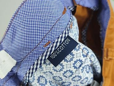 Męskie spodnie 3/4 Cotton Traders - Marka: Cotton Traders - Rozmiar: S (UK/US S, EU 30–32 – na metce) - Materiał: 100% bawełna - Kolor: jasnoniebieski z białymi, pionowymi paskami - Krój: długość ...