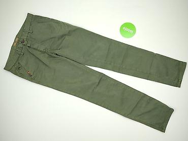 Damskie spodnie jeansowe w kolorze oliwkowym/khaki. - Krój: dopasowany, rurki/skinny - Stan biodrowy: średni - Zapięcie: suwak + podwójny guzik - Kieszenie: klasyczne 5 kieszeni (2 z przodu, kiesz...