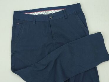 Męskie spodnie chino – granatowe - Krój: klasyczne chino, prosta nogawka - Kolor: granat - Materiał: 98% bawełna, 2% spandex – lekko elastyczne, wygodne - Rozmiar z metki: W35 L32 - Zapięcie: guzi...