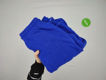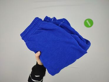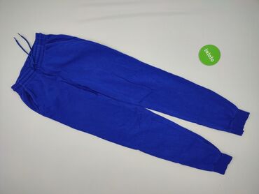 Niebieskie spodnie dresowe unisex - Rozmiar: M (na metce) - Fason: zwężane nogawki z ściągaczami u dołu - Pas: elastyczny, wygodna guma - Kieszenie: dwie boczne - Materiał: 50% bawełna, 50% polies...