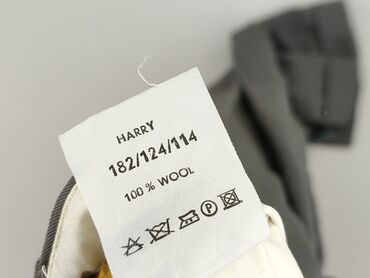 Męskie spodnie garniturowe – grafitowe - Krój: klasyczny, z szlufkami na pasek, z kantem - Materiał: 100% wełna (etykieta na zdjęciu) - Rozmiar z metki: 32/32 - Zapięcie: guzik + suwak - Kieszenie...