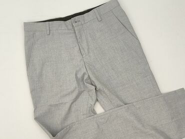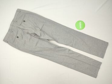 Męskie spodnie garniturowe – szare - Klasyczny, prosty krój z zaprasowanym kantem - Materiał gładki, lekko melanżowy w odcieniu jasnoszarym - Zapięcie na guzik i zamek błyskawiczny - Szlufki na pa...