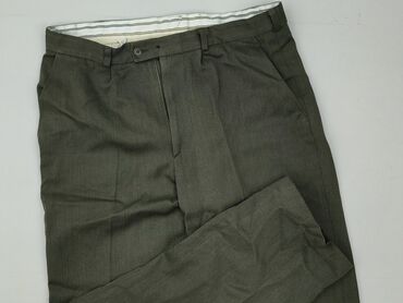 Męskie spodnie garniturowe w kolorze ciemnej oliwki/khaki.