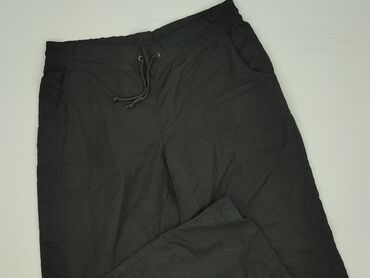 Czarne, prążkowane spodnie dresowe/joggery - Krój: zwężane nogawki, średni stan - Talia: elastyczna gumka + sznurek do regulacji - Materiał: 100% poliester (metka na zdjęciu) - Struktura: wyraźny p...