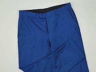 Męskie spodnie materiałowe – granatowe - Krój: klasyczny, proste nogawki - Materiał: lekko elastyczna tkanina o drobnym, teksturowanym splocie (mikrowzór) - Kolor: ciemny granat - Zapięcie: guzik ...