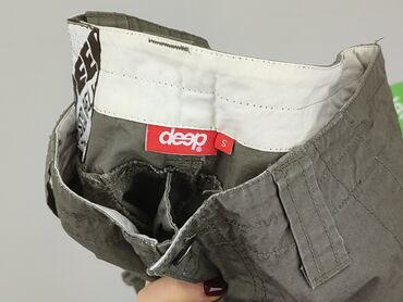 Męskie szorty cargo Reserved - Wzór: moro (khaki/czarny) - Rozmiar z metki: 32 - Pas: elastyczna guma + sznurek do regulacji - Kieszenie: - 2 przednie skośne - 2 tylne wpuszczane z l...