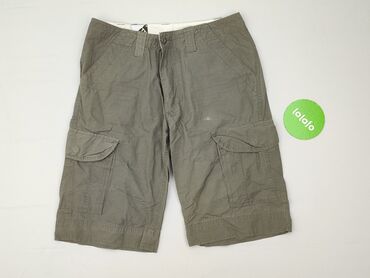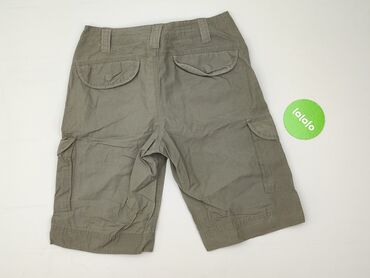 Męskie krótkie spodenki cargo - Kolor: beżowy/kaki - Rozmiar: W34 (pas 34) - Fason: cargo, długość za kolano - Materiał: 100% bawełna (informacja z metki) - Zapięcie: guzik + zamek - Szlufki na pa...
