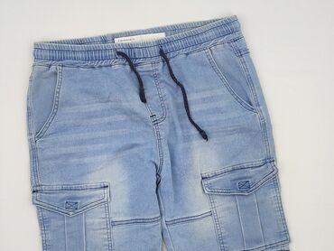 Męskie krótkie spodnie jeansowe New Feeling - Krój: bermudy/shorty z licznymi kieszeniami typu cargo - Materiał: 85% bawełna, 15% poliester (metka wewnętrzna) - Rozmiar z metki: 30 (W30) - Kolor: ...
