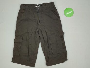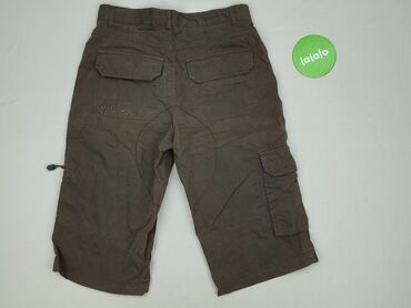 Męskie szorty cargo w kolorze khaki - Rozmiar: M (na metce) - Materiał: 85% bawełna, 15% poliester - Pas: elastyczny z gumką, dodatkowe szlufki na pasek, zapięcie na guzik - Krój: luźny, długość d...