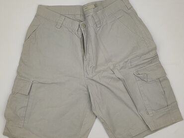 Męskie krótkie spodenki cargo, beżowe - Fason: cargo/bermudy, długość za kolano - Kolor: jasny beż - Materiał: lekka, oddychająca tkanina bawełniana (na dotyk cienka i przewiewna) - Pas: elastyczn...