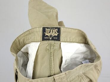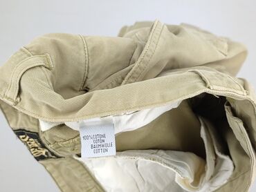 Męskie krótkie spodenki cargo - Kolor: beżowy/kaki - Rozmiar: W34 (pas 34) - Fason: cargo, długość za kolano - Materiał: 100% bawełna (informacja z metki) - Zapięcie: guzik + zamek - Szlufki na pa...