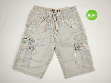 Męskie szorty cargo JKJNS - Rozmiar: L (na metce) - Fason: cargo, długość za kolano - Kolor: jasnoszary - Materiał: 100% bawełna (metka) - Zapięcie: guzik + zamek - Kieszenie: 2 przednie, 2 tylne ...