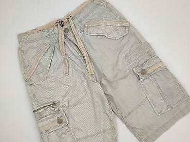 Męskie krótkie spodenki cargo, beżowe - Fason: cargo/bermudy, długość za kolano - Kolor: jasny beż - Materiał: lekka, oddychająca tkanina bawełniana (na dotyk cienka i przewiewna) - Pas: elastyczn...