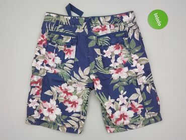 Krótkie spodenki męskie LIVERGY - Kolor: granatowy z ciemnym, roślinnym wzorem (liście) - Fason: cargo/bermudy, do kolan - Zapięcie: guzik + zamek - Szlufki na pasek - Kieszenie: - 2 skośne z pr...