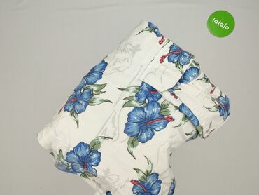 - Wzór: tropikalny, niebieskie hibiskusy na jasnym tle