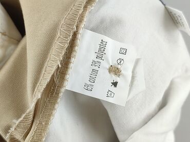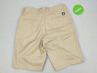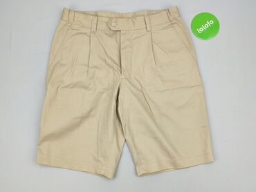 Męskie szorty chino – beżowe - Klasyczny krój z prostą nogawką do kolan - Materiał: 100% poliester (metka na zdjęciu) - Rozmiar z metki: 38 - Kolor: piaskowy/beż - Zapięcie na guzik i zamek, szluf...