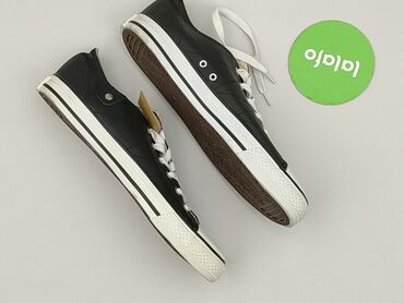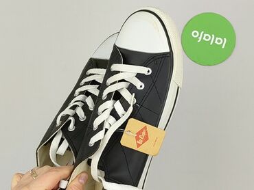 Czarne trampki/sneakersy sznurowane - Klasyczny, prosty fason z 3–dziurkowym sznurowaniem - Cholewka z przewiewnej tkaniny (canvas) - Wkładka z siateczkową fakturą dla lepszej wentylacji - Podeszw...