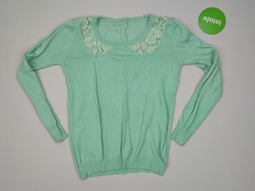 Sweter damski – cienka dzianina, kolor szałwiowej zieleni. - Fason: klasyczny, z okrągłym dekoltem - Rękawy: długie - Wykończenia: szerokie, elastyczne ściągacze przy mankietach i u dołu - Materia...Stan: