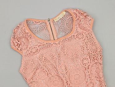 Sukienka damska koronkowa – brzoskwiniowa/łososiowa - Krój: prosta, mini/tuż przed kolano - Rękaw: krótki - Dekolt: okrągły - Materiał: elastyczna dzianina z miękką podszewką; wierzch z ażurowej k...