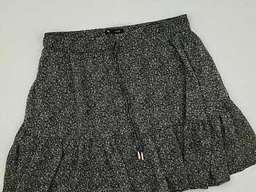 Spódnica damska w kwiaty - Krój: rozkloszowany, lekko bufowany dół - Wzór: intensywny, tropikalny motyw kwiatowy na brązowym tle (wielobarwne liście i kwiaty) - Talia: szeroka czarna guma z dekora...