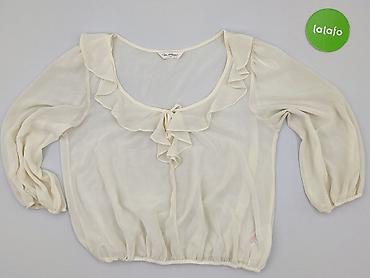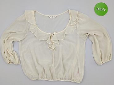 - Model: zwiewna, półprzezroczysta bluzka z falbaną przy dekolcie i wiązaniem z przodu
