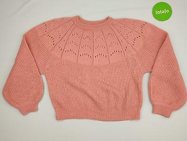 Damski sweter z długim rękawem, w kolorze jasnego, pudrowego różu. Miękki, „włochaty” materiał z pionowym, prążkowanym splotem, który ładnie dopasowuje się do sylwetki. Okrągły dekolt, elastyczne m...Stan: