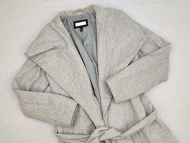 Klasyczny, minimalistyczny płaszcz idealny do stylizacji biurowych i casualowych; neutralny kolor łatwo łączy się z innymi barwami i fasonami. Dla kobiet. Używany.
