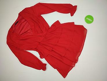 Sukienka MOHITO, rozmiar S, made in Turkey. - Kolor: intensywna czerwień - Fason: rozkloszowana, długość mini do kolan, odcięcie w talii, doły z marszczonymi, kaskadowymi falbanami - Dekolt: w ksz...