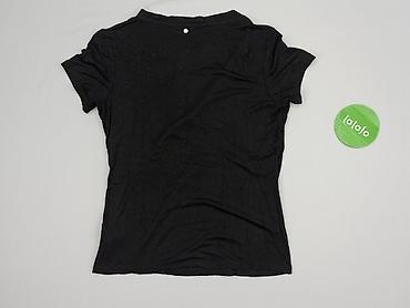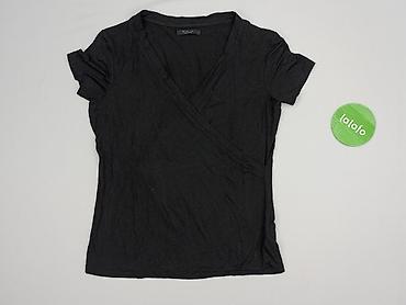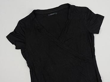 Bluzka damska Mohito, rozmiar S. - Kolor: czarny - Krój: taliowana z baskinką (rozkloszowany dół), krótkie rękawy - Dekolt: okrągły, z tyłu łezka zapinana na guzik - Detale: błyszczące lamówki/pas...