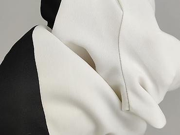 - Kolor: biały z kontrastową czarną wstawką biegnącą asymetrycznie przez przód oraz czarnymi mankietami