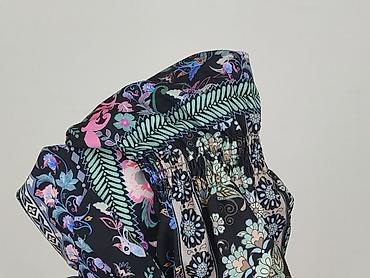 - Wzór: bogaty, wielokolorowy print kwiatowo-roślinny na czarnym tle; dekoracyjne, geometryczne lamówki.