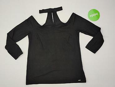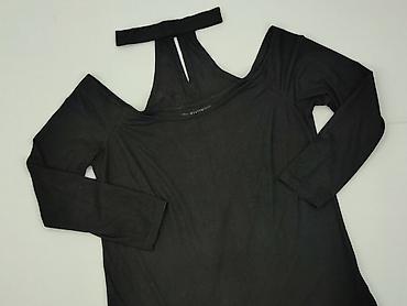 - Fason: odkryte ramiona (cold shoulder) z dekoracyjnym paskiem/halka przy szyi, dekolt w kształcie litery V z wycięciem, rękawy 3/4