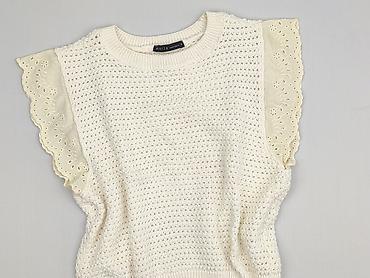 Ażurowy sweter damski PEP&CO - Rozmiar: M (metka) - Kolor: kremowy/ecru - Fason: krótki, lekko pudełkowy, z długim rękawem - Splot: dekoracyjny ażurowy wzór na całej powierzchni; dół, mankiety i d...