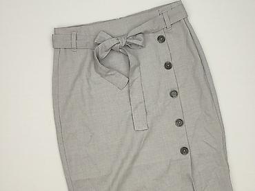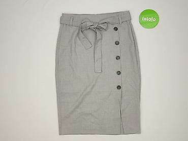 Spódnica damska w prążki - Krój: rozszerzany ku dołowi, delikatnie falowany dół - Wzór: cienkie pionowe prążki w odcieniach szarości z subtelnymi, jasnobrązowymi akcentami - Talia: szerszy pas, wy...