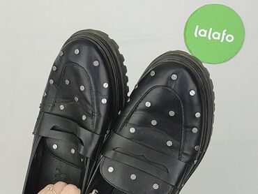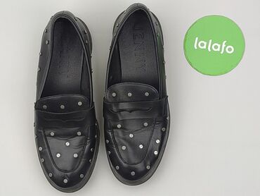 Czarne damskie mokasyny skórzane - Klasyczny fason wsuwany, z charakterystycznym prostokątnym noskiem i języczkiem - Materiał wierzchni: skóra naturalna - Kolor: czarny, półmatowy - Podeszwa elast...