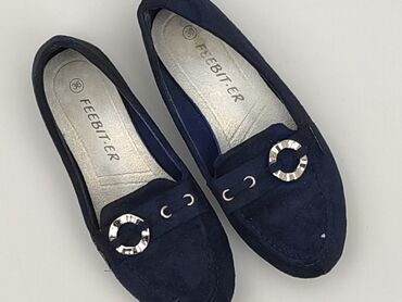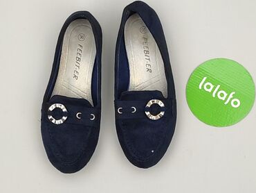 Damskie mokasyny granatowe, rozmiar 37. - Klasyczny fason z przeszyciami na cholewce - Miękka, zamszowa/filcowa w dotyku cholewka w kolorze navy - Delikatny akcent ozdobny z czerwono‑granatową wst...Stan: