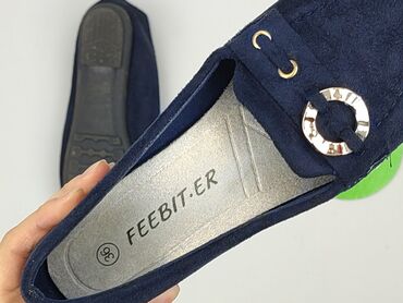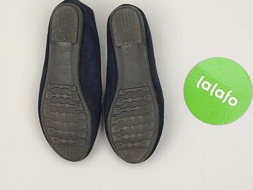 Damskie mokasyny granatowe, rozmiar 37. - Klasyczny fason z przeszyciami na cholewce - Miękka, zamszowa/filcowa w dotyku cholewka w kolorze navy - Delikatny akcent ozdobny z czerwono‑granatową wst...