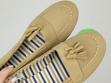 Damskie buty wsuwane (mokasyny/espadryle) - Rozmiar: 41 (oznaczenie na podeszwie) - Kolorystyka: beż, écru, jasny brąz; melanżowa tkanina z drobnym wzorem - Cholewka: tekstylna, przewiewna, z deko...Stan: