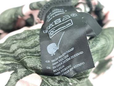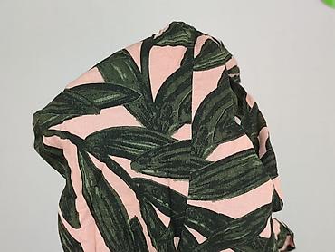 Bluzka MONKI – rozmiar XL - Fason: luźna, nietoperz/oversize z szerokimi rękawami, asymetryczna linia ramion. - Wzór: abstrakcyjny, geometryczne liście w odcieniach czerni, zieleni i pudrowego róż...